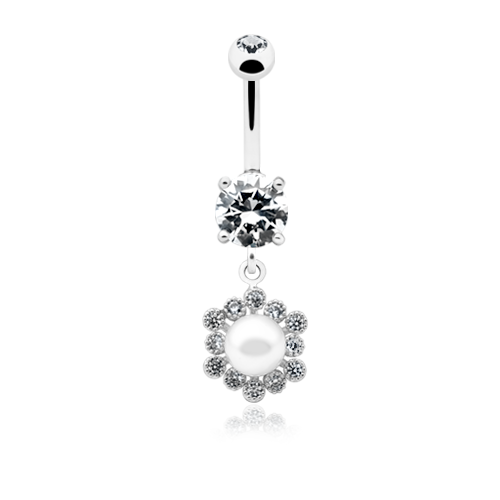 Golden Glistening Flower Belly Ring. You won't believe the sparkle and shine in this one! Flower is 7/16" wide. 14GA. 3/8" barbell. Gold plated ste...