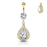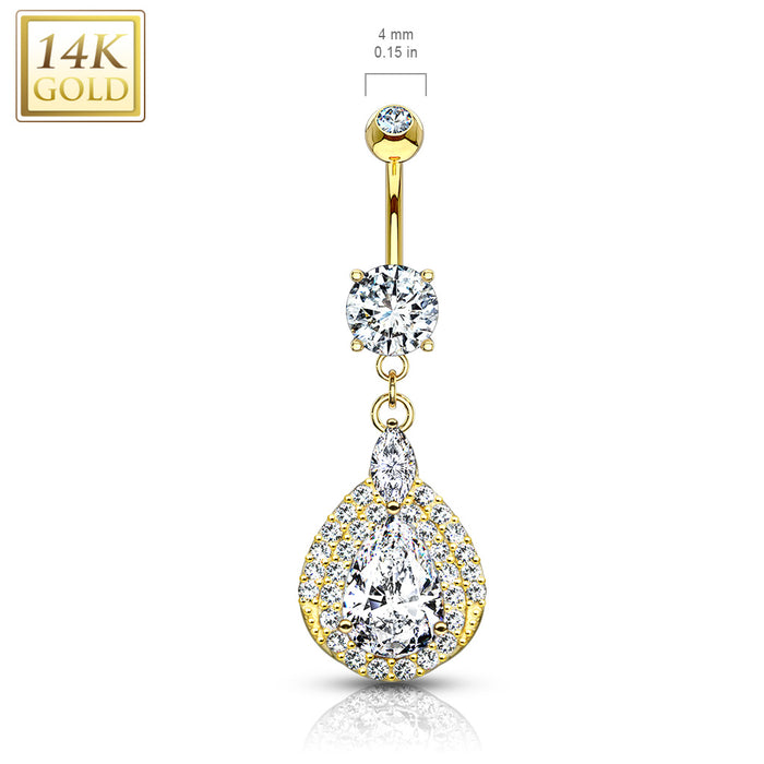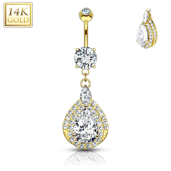 14 KT Three Tiered Tear Drop CZ Dangle Solid Gold Belly Ring