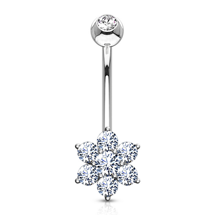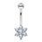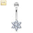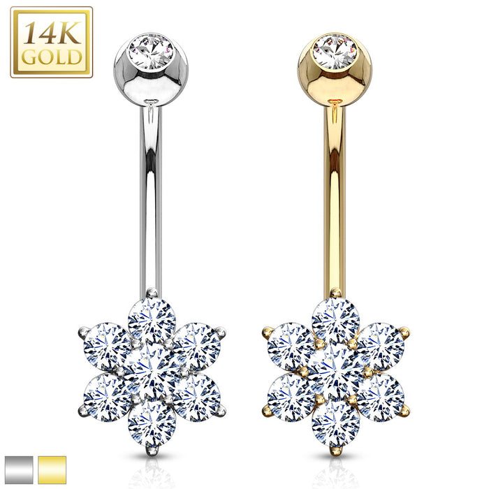 14K Flower CZ Clear Solid White Gold Belly Ring