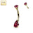 14k Teardrop Solid Gold Red CZ Prong Set Belly Ring