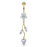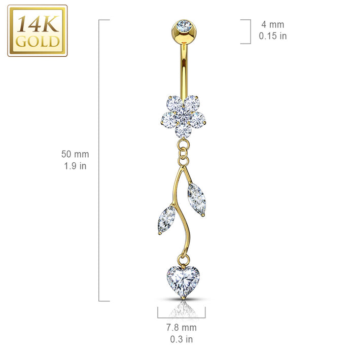 14K Vine Dangling Flower CZ Solid Gold Belly Ring