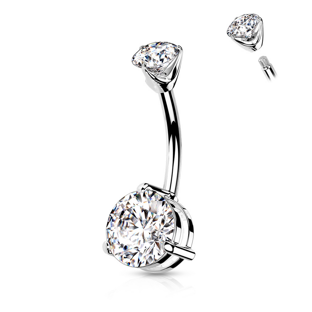 Beautiful 14k white gold CZ Double Prong Naval Belly Ring. 14k real white gold belly rings are absolutely stunning. Enjoy the luster of brilliant 14k gold belly rings. 14 Gauge. 3/8" length. 4mm and 6mm ball sizes. 14k Gold Belly Rings.