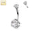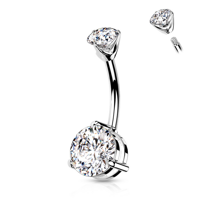 14k White Gold Round CZ Double Prong Set Belly Ring