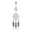 Three Feathers Dream Catcher Dangle 316L Surgical Steel Belly Button Ring. Tons of sparkle and a really fun belly ring! Beautiful 4 pronged 7mm clear gem. 14GA. 3/8" barbell. 5mm ball top. Dreamcatcher dangles 1 1/2".