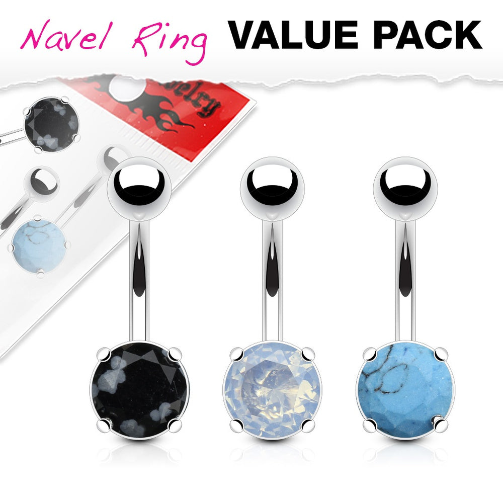 3 Piece Value Pack Semi Precious Stone 316L Surgical Steel Belly Button Navel Ring Pack. You get everything shown. 14 GA. 3/8" barbell. Multi pack deals are the best way to get more for your money!
