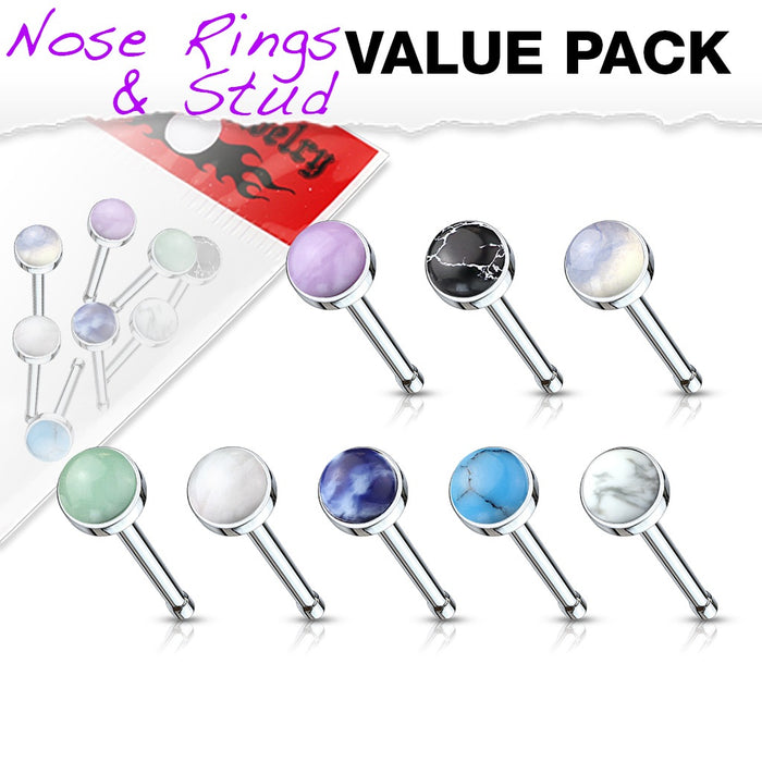8 Pieces Value Pack Semi Precious Stone Set 316L Surgical Steel Nose Bone Stud Rings. You get all colors shown in picture. Our multi packs are the best way to get more for you money! 20GA. 1/4" length. 3mm ball.