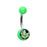 Acrylic Weed Leaf Marijuana Belly Button Ring. Bright green. 14GA. top ball is 5mm and bottom ball is 8mm. Small size. 3/8" barbell. Surgical Steel material.