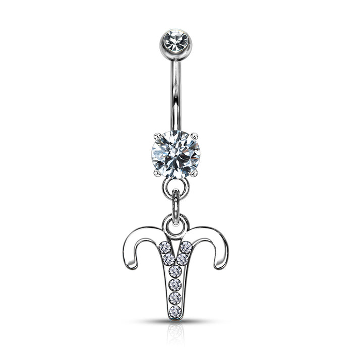 Aries Zodiac CZ Belly Ring