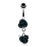 Black Dangling Mini Roses Belly Ring. Metal Roses delicately dangle from this Surgical Steel belly ring to give you a delicate look all year. A single mini rose dangles perfectly from the top rose. Flower belly rings are a great addition to any naval ring collection. 14 GA. 3/8" barbell. 5mm ball top.