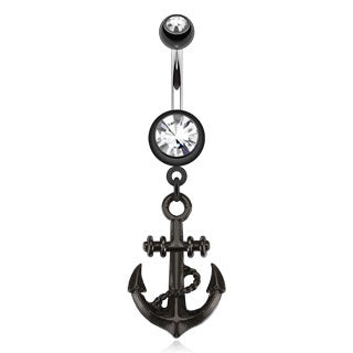 Wear this fun black anchor belly ring and look ready to sail away. This cute dangling navel ring is the perfect color to go with your sailor suit.
