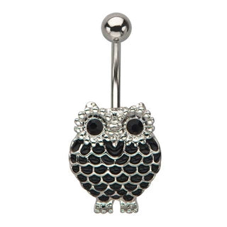 The black owl belly ring is owl-standing. The black owl belly rings are owl-ragous. The black owl belly rings are a combination of adorable, unique, and beautiful rolled into one single owl belly button ring. Your friends will hoot and holler for this unique owl belly ring. With a shiny black surface, this owl belly button ring is a different take on our typical Animal Belly Rings which are normally lined with gems and jewels. For someone who dares to be different, this black owl belly button ring represents the best features of this prized bird. With talons for hunting and pointy ears specially adapted over time to aide in hunting prey, this owl belly ring looks eerily similar to the nocturnal bird you see in the woods.