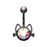 Blackline Cat Face Belly Ring with Iridescent Gem. Adorable for all you kitty cat lovers! Animal belly rings are the cutest! 14 GA. 3/8" barbell. Width from whisker to whisker is 1 1/4".