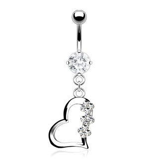 This heart with clear gem belly button ring is the perfect accessory for your spring or summer. The cubic zirconia gem and flowers on this dangling belly ring are sure to start your spring break on a fun sparkly note.
