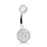 Clear Glitter Acrylic Ball Belly Ring. Simple style, look and feel. Glitter gives this naval ring just the amount of sparkle it needs. 14 GA. 7/16" barbell. 316L Surgical Stainless Steel material.