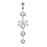 Clear Triple Gem Bow Belly Ring