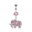 Show off your wild safari side when you wear this cute elephant belly button ring. Available in Pink and Clear. The cubic zirconia gems really make this elephant navel ring sparkle with fun.