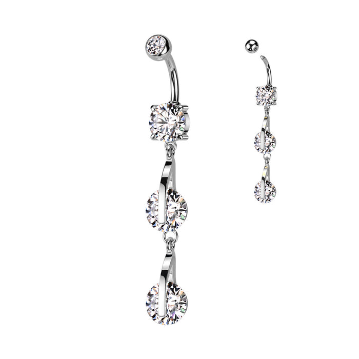 Double CZ Dangle Silver Surgical Steel Belly Ring