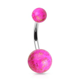 Fossil Ball Belly Ring. This amazing belly ring features a fossil ball with a unique textured look. The fossil ball on the end looks like a miniature work of art. This one is flashy!