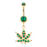 Marijuana Leaf Sparkle Belly Button Ring. Lots of sparkle in this green and gold pot leaf belly ring. 14GA. 3/8" barbell. High quality cubic zirconia gems. Weed leaf is 3/4" wide. Gold plated surgical steel material.