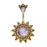 Beautiful sparkling vintage antique golden sunburst belly ring. So much detail in this one! You'll love how unique this belly button is! Purple and green sparkle through the center and give it a stunning mix of colors that will shimmer all day! 14GA. 3/8" barbell. 316L Surgical Steel material. Total length is 1 1/2". Width of sunburst is 3/4".