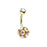 Gold Plated Surgical Steel Sparkle Multi Gem Belly Button Ring. Iridescent gem balls surround this eye catching naval ring. 14GA. 3/8" barbell. 5mm gemmed ball top. A great size!