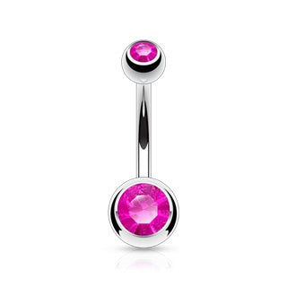 Fun and flirty is what shouts out from this double gem belly button ring. This non dangling belly ring with hot pink gems makes you look like a hot firecracker that is ready to party.
