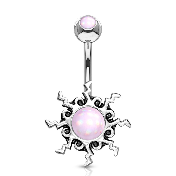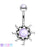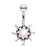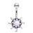 Tribal sun illuminating Stone Center with illuminating stone stop belly button ring. Available in purple, clear, pink, and aqua.