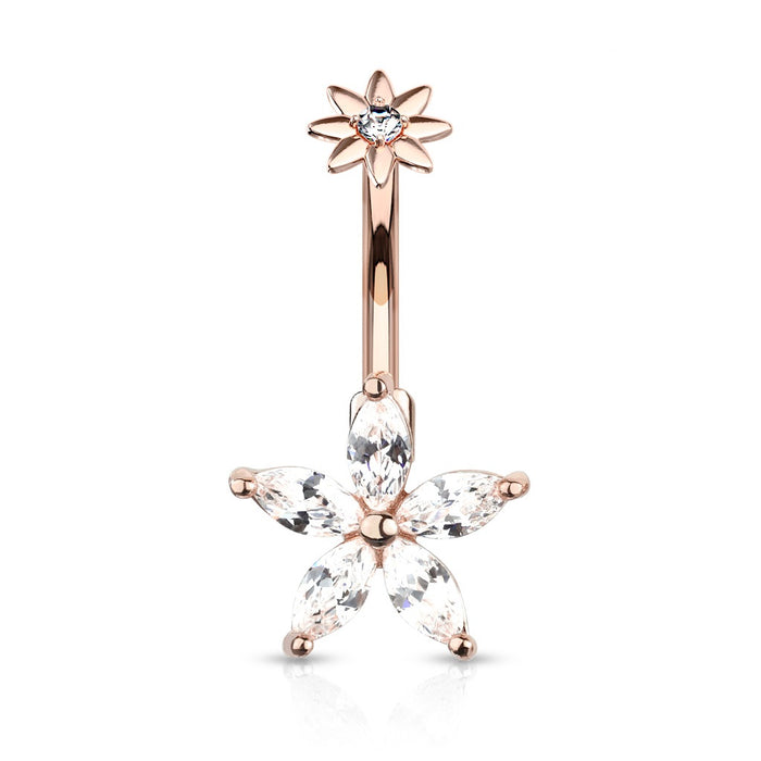 Home Marquise CZ Petals Flower Belly Ring - Rose Gold