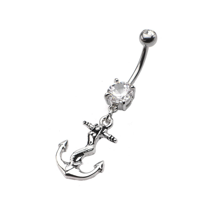 Dreaming of the sea? This mermaid on an anchor belly ring is sexy and perfect for summer! Anchor is 1/2" wide and dangles at 7/8". 14 GA and 7/16 barbell. 316L Surgical Steel material.