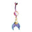 Mermaid Tail Belly Ring. Tropical belly ring with beautiful colors Purple, Teal and Aurora Borealis! Beach ready and stylish! 14 GA. 3/8" barbell. Colorline Surgical Steel material. Dangles 3/4".