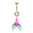 Mermaid Tail Belly Ring. Tropical belly ring with beautiful colors sparkling gold, pink, aqua and Aurora Borealis! Beach ready and stylish! 14 GA. 3/8" barbell. Surgical Steel material. Dangles 3/4".