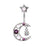 So much style and charm in this naval ring! Moon and stars with opals and purple gems. Cute little dangling star hangs from the moon. 14GA. 316L Surgical Steel material. 3/8" barbell. Total length from top to bottom of belly ring is 1 1/2". Great size and color!
