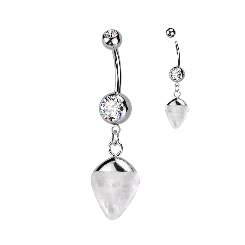 Opalite Double Jeweled 316L Surgical Steel Belly Button Navel Ring With Semi Precious Stone Dangle