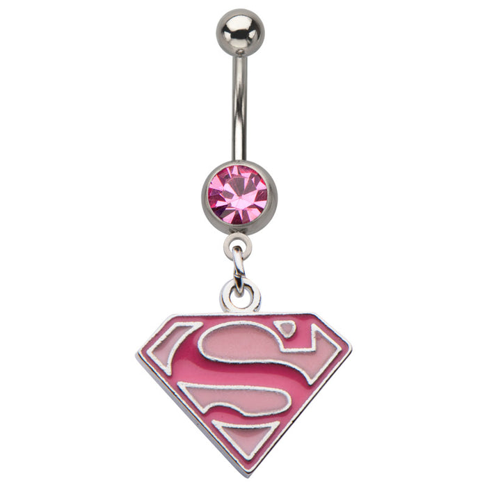 This officially licensed Supergirl Logo belly ring is perfect for all the DC Comic lovers out there! Pink really is the toughest color. Be a superhero any day of the week wearing your very on Supergirl belly ring!