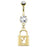 Locket with Playboy Bunny Die-Cut Dangle. 14kt Gold Plated Navel Ring. The iconic Playboy Bunny logo is bright gold and soon to be the envy of all your friends. A ton of sparkle! 14 Gauge, 3/8" barbell and 14kt Gold Plated.