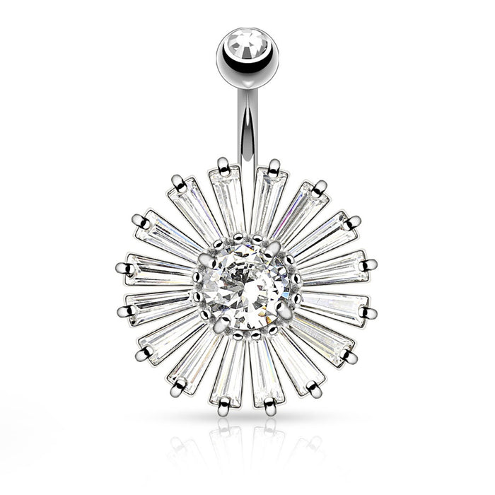 Princess Cut Shield with Clear CZ Center Belly Ring