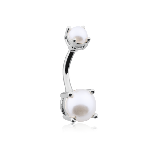 Prong Set Pearl Belly Ring. This is elegant, classy and unique! It's a real beauty. White pearl and silver color are stunning. 14GA. 3/8" barbell. 316L Surgical Steel material.