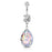 Rainbow Glitter Opalite Stone Belly Ring Silver