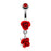 Red Dangling Mini Roses Belly Ring. Metal Roses delicately dangle from this Surgical Steel belly ring to give you a delicate look all year. A single mini rose dangles perfectly from the top rose. Flower belly rings are a great addition to any naval ring collection. 14 GA. 3/8" barbell. 5mm ball top. Also available in purple.