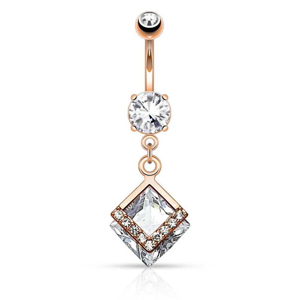 Rose Gold Diamond Shape CZ Belly Ring