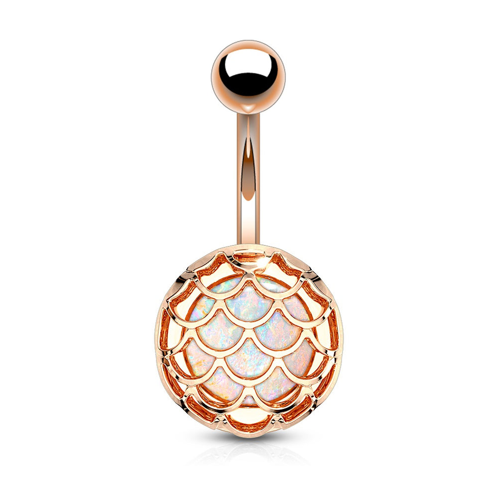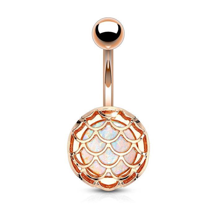 Rose Gold Opal Glitter Fish Scale Belly Ring