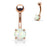 Rose Gold Opal Glitter Prong Set Gold IP Over 316L Surgical Steel Belly Button Ring in off white. Lots of sparkle and shine! 8mm synthetic opal. 5mm ball top. 14GA. 3/8" barbell. Opal belly rings are always popular! Add a little glitter and you're ready for anything! Available in: purple, pink, off white, green, dark green, aqua, blue.