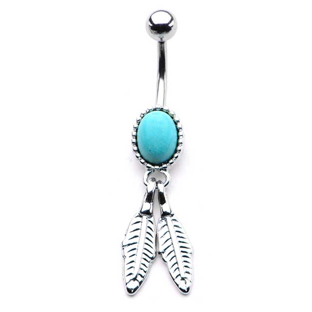 - Turquiose stone with 2 dangling feathers gives this one the perfect Southwestern look.