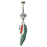 Wing belly button rings are here to take flight. Tickle your imagination with a wing belly button ring. The epoxy wing has green, orange, and white feathers bringing a splash of color to this fun and unique dangling belly ring. Show off your true feathers with this beautiful wing belly button ring. Where is your imagination's wings going to take you?