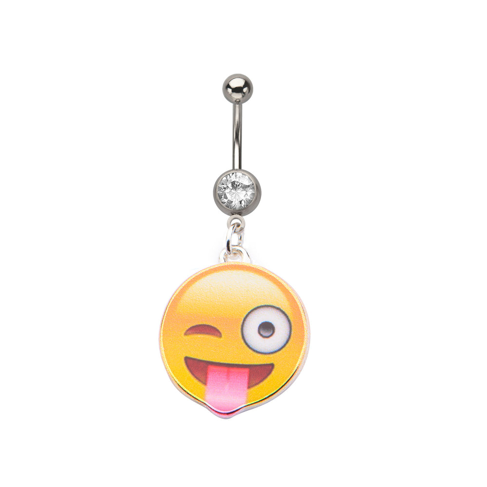 Winky Tongue Emoji Belly Ring is wacky, zany and fun! Feeling silly? Or maybe suggestive? The emoji belly rings are a great way to show your playful side. Width is 5/8". 14GA. 7/16" barbell. 316L Surgical Steel material.